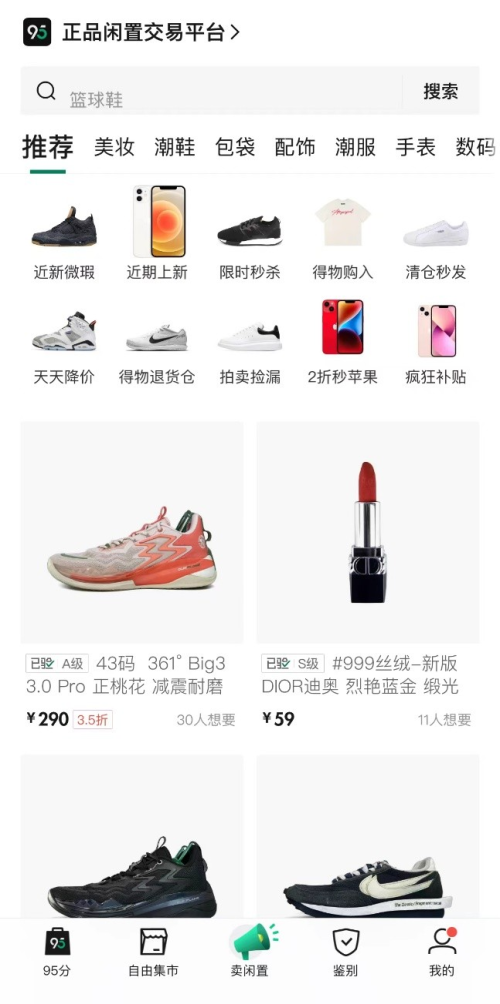 闲置商品的种类已然超出了传统消费认知的范围,从衣物鞋帽到电子产品,从书籍文具到家居用品,从美妆用品到私人收藏,几乎涵盖了日常生活的方方面面。通过智能推荐、精准匹配、信用评价等功能,一系列闲置交易平台让闲置物品能够更快找到需要它们的人,为年轻人提供了“清空购物车”的新渠道。作为年轻人喜爱的闲置交易平台,95分App在此基础上,以独特的正品保障模式,让更多年轻人加入了闲置交易的行列。