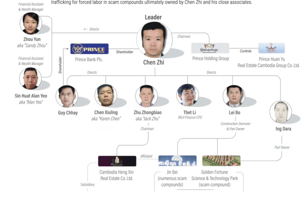 陈志是柬埔寨「太子控股集团」的创始人兼董事长,该集团号称在 30 多个国家经营房产、金融等业务,实则被指控暗中发展为东南亚最大的跨国犯罪组织之一。据美国司法部和财政部披露的信息,陈志等人自 2015 年起在柬埔寨各地运营至少 10 个诈骗产业园区,诱骗全球受害者投入虚假加密投资,手段正是近年来臭名昭著的 “杀猪盘”。美国检方称陈志是这个 “网络诈骗帝国” 的幕后主谋,不仅默许对员工施暴、贿赂他国官员提供保护伞,还纵容集团上下通过奢华消费挥霍诈骗所得,包括购买游艇、私人飞机,甚至纽约拍卖行拍卖的毕加索名画。