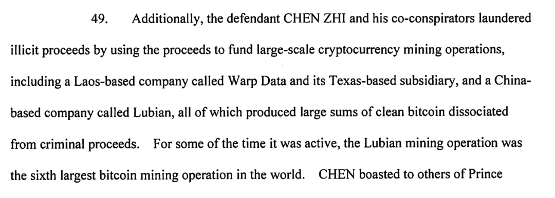 起诉书揭示,陈志及其同伙将诈骗所得投向自己控制的加密货币挖矿业务,以此 “洗出” 不带犯罪污点的全新比特币。在表面上合法的采矿过程中,原本的黑钱转换为新挖出的 “干净” 比特币资产,从而试图切断资金与犯罪之间的关联。这一洗钱策略使得太子集团名下的矿场源源不断地产出比特币,成为其隐匿赃款的重要渠道之一。