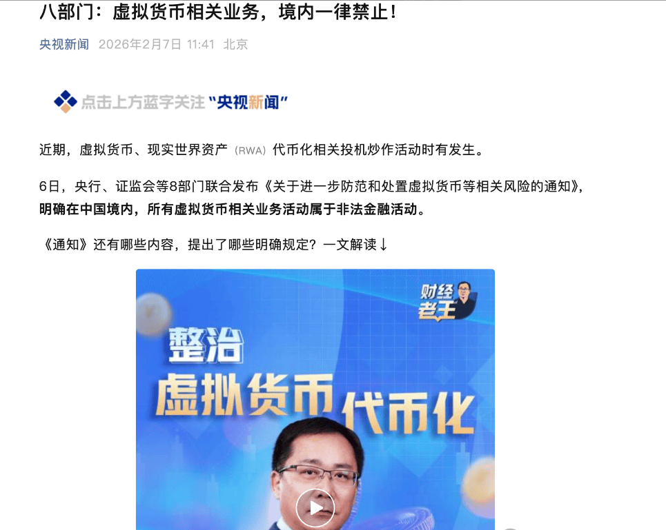OKX 哈希游戏怎么玩?本教程详细讲解哈希游戏原理、加密货币投注流程,使用 BTC、USDT 体验公平透明的链上游戏,无需信任第三方,智能合约自动结算!2月 6 日晚,央行 + 发改委 + 公安部 + 证监会等八大部门 突然放大招 ——《关于进一步防范和处置虚拟货币、现实世界资产代币化相关风险的通知》正式落地!经国务院点头的这份新政,不仅把 2021 年的旧规扔进了 “回收站”,还带着 “全链条封杀 + 穿透式监管” 的狠劲,直接给虚拟货币和 RWA 代币化的 “狂欢派对” 拉了电闸。对老板们、投资者来说,这可不是普通的政策升级,而是关乎 “钱袋子” 的 “避坑保命指南”,再不听劝可能真要栽大跟头!