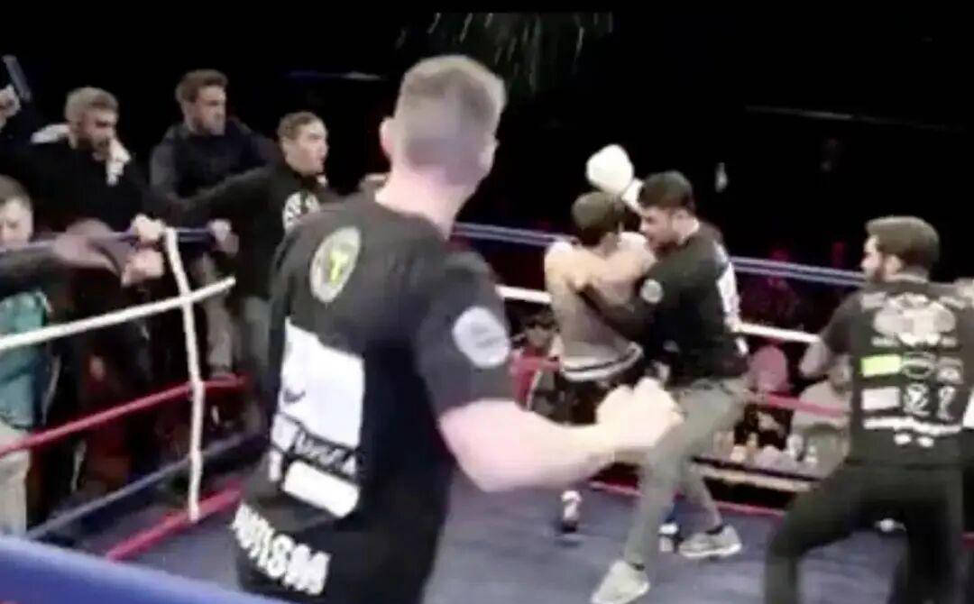 然而,正当詹尼斯专注祈祷时,瓦希德团队的一名白衣壮汉不顾现场工作人员阻拦,直接走向跪地的詹尼斯,毫无预警地挥拳击打其头部,将他击倒在地。随即双方阵营及部分观众迅速涌向擂台,爆发大规模肢体冲突。据当地媒体报道,此次群殴共计约五十人参战,美国导致现场秩序几近崩溃,场面极为混乱。