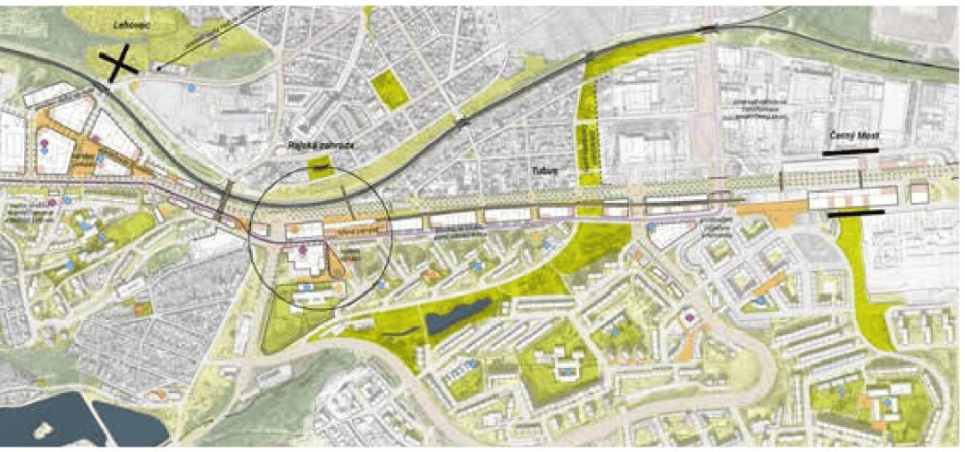 结构层面:城市振兴计划聚焦于把赫卢梅茨卡公路改造为以非机动车用户优先的街道。具体包括提升地铁上方步行廊道和开发周边邻近地块,以及将Lehovec回车场改造为当地中心。升级天堂花园站(Rajská Zahrada)片区及附近公园,以满足社区需求并提供新的便利设施与就业机会。